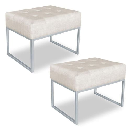 Kit 02 Puffs Lisa Suede Bege Base Metálica Industrial Prata