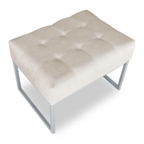 Kit 02 Puffs Lisa Suede Bege Base Metálica Industrial Prata - Pallazio