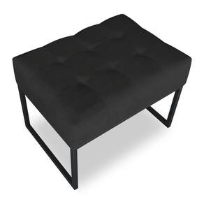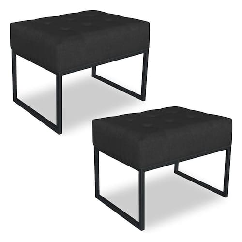 Kit 02 Puffs Lisa Suede Preto Base Metálica Industrial Preto - Pallazio