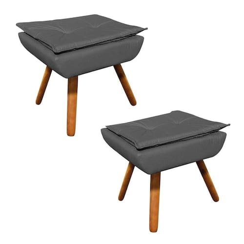 Kit 02 Puffs Opala Corino Pés Palito Castanho - D'Rossi