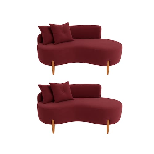 Kit 02 Sofá Orgânico 2 Lugares C/2 Almofadas Curvo Sala Recepção Veludo Bordô - Montanaris Decor
