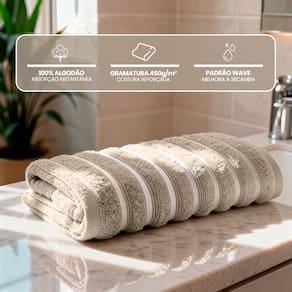 Fabricadas em 100% algodão e com gramatura de 450g/m², as toalhas oferecem maciez excepcional e excelente absorção. O design moderno em ondas proporciona um toque estiloso, tornando-as ideais para relaxar na areia ou à beira da piscina.