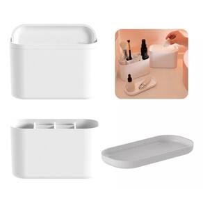 Kit Organizador de Pincel Maquiagens Com Divisórias + Lixeira Basculante de Bancada + Bandeja Decorativa Porta Anéis Objetos