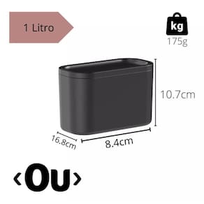 Informações Técnicas Altura 9.8cm Largura 16.8cm Profundidade 8.4cm Peso 208g Material PS - Poliestireno Capacidade 1 Litro Marca: Não Informado