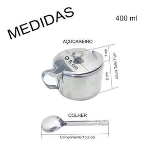 Kit 03 Açucareiro Inox Com Colher Para Sua Cozinha 250Ml Vendas nos últimos 60 dias marca: Ke Home modelo: 5210 Utensílios Servir Mesa Restaurante Lanchonete Açúcar Cozinha tipo de produto: Açucareira material: Inox comprimento: 8.6 cm largura: 8.6 cm altura: 6 cm