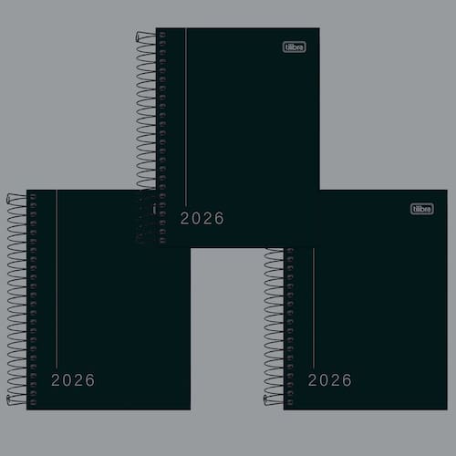 Kit Contém: 03 Agendas Preta Espiral 2026.