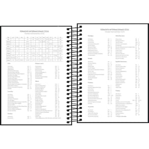 Capa: dura Espiral: colorido Folhas: pautadas decoradas Miolo Produto certificado: FSC Visão: diária exceto sábado e domingo Formato: 117mm x 164mm Gramatura: 63 g/m² Número de folhas: 160 folhas