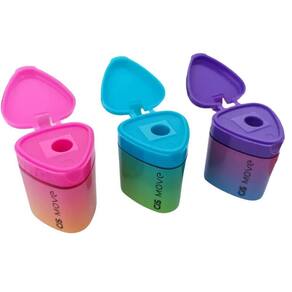 O apontador Move possui reservatório com tampa decorada, impedindo a saída de resíduos no estojo, além disso possui uma lâmina resistente, deixando ainda mais fácil de apontar;