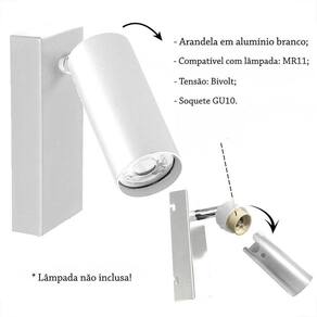 Essas arandelas são compatíveis com lâmpada MR11 e possuem soquete Gu10. Além disso, são bivolt, o que significa que podem ser utilizadas em ambientes com diferentes tensões elétricas.