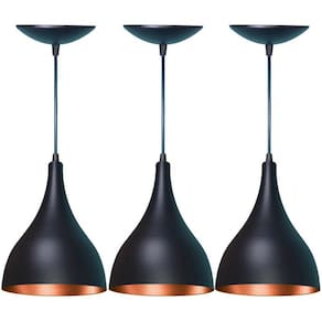 Anúncio referente ao kit de 3 luminárias.Luminária Pendente Gota, fabricada em alumínio, material altamente resistente ao tempo.Luminária composta por cabo PP com 1 metro de comprimento tamanho ajustável , soquete E27, canopla e cúpula em alumínio.Luminária ideal para ambientes internos, utilizada em salas de estar, cozinhas, salas de jantar, área gourmet entre outras.Ilumine e decore o seu lar com nossas lindas luminárias. Deixe a imaginação tomar conta.Lindo pendente para quem gosta de um ambiente com estilo e bem iluminado.Material: Alumínio não enferruja Medidas: 15 cm diâmetro x 18 cm altura mais 1.00 m de caboAltura aproximada montada: 1,18 m Altura ajustável Soquete: E27 aplicável com lâmpada comum ou LED Voltagem: Bivolt 127/220 v Não acompanha: LâmpadaCor Externa: Preta FoscaCor Interna: CobreGarantia: 3 meses de garantia contra defeitos de fabricação. Marca: Estillo & luz