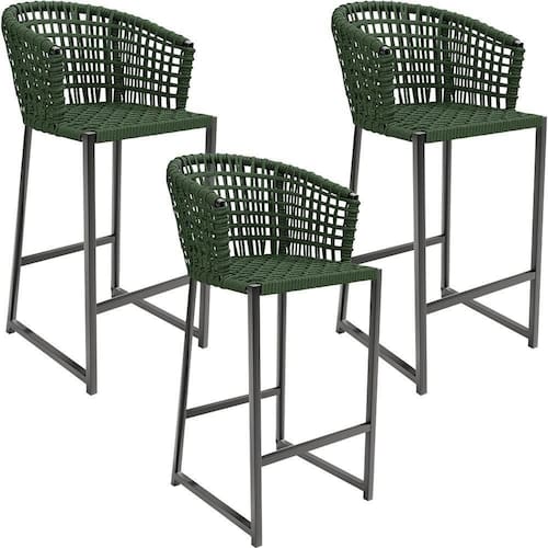 Kit 03 Banqueta Para área Gourmet Cozinha Varanda Corda Náutica Porto D04 Verde - Lyam Decor