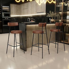 Amplamente moderna, dispondo de muito realce e design singular, O Kit 03 Banquetas Altas Bar Cozinha Sala De Jantar Estrutura Em Aço Milão L02 Couríssimo Marrom - Lyam Decor vem com a personalidade e elegância que sua decoração merece! Estruturada em aço carbono, contrasta lindamente com o encosto e assento estofados, cabe mencionar ainda seu revestimento em Couríssimo, é confeccionada por materiais de excelente qualidade, extremamente resistentes e aconchegantes. Possui altura ideal, garantindo o encaixe perfeito no ambiente, otimizando seu espaço e promovendo máximo conforto. Pode ser disposta em bancada, cozinha americana, área gourmet ou home bar, as possibilidades são infinitas e as combinações ficarão perfeitas. Adquira já a sua!!