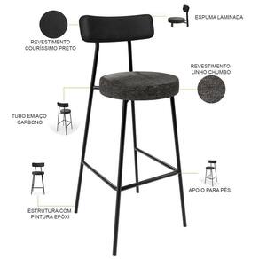 Amplamente moderna, dispondo de muito realce e design singular, o Kit 03 Banquetas Alta Bar Cozinha Sala De Jantar Em Aço Milão L02 Couríssimo Preto Linho Chumbo - Lyam Decor vem com a personalidade e elegância que sua decoração merece! Estruturada em aço carbono, contrasta lindamente com o encosto e assento estofados, cabe mencionar ainda o revestimento do seu encosto em Couríssimo e do assento em Linho, é confeccionada por materiais de excelente qualidade, extremamente resistentes e aconchegantes.