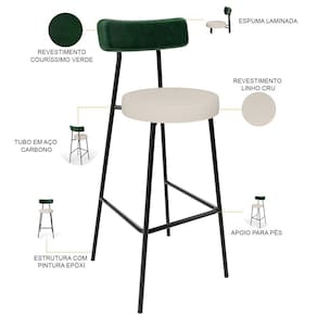 Amplamente moderna, dispondo de muito realce e design singular, o Kit 03 Banquetas Alta Bar Cozinha Sala De Jantar Aço Milão L02 Facto Verde Musgo Linho Cru - Lyam Decor vem com a personalidade e elegância que sua decoração merece! Estruturada em aço carbono, contrasta lindamente com o encosto e assento estofados, cabe mencionar ainda o revestimento do seu encosto em Couríssimo e do assento em Linho, é confeccionada por materiais de excelente qualidade, extremamente resistentes e aconchegantes.