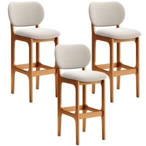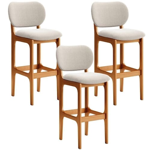 Amplamente sofisticada, o Kit 3 Banquetas Alta Para Cozinha Fixa Betta L02 Imbuia Bouclê Creme - Lyam Decor irá agregar ainda mais valor em sua decoração!! Sendo capaz de compor muito bem o ambiente, é produzida com materiais de excelente qualidade, a resistente estrutura em madeira de Taeda, na cor imbuia, conta com apoio para os pés (que garante maior segurança), além do assento e encosto estofados super confortáveis e convidativos, que são revestidos em tecido Bouclê, extremamente elegante.