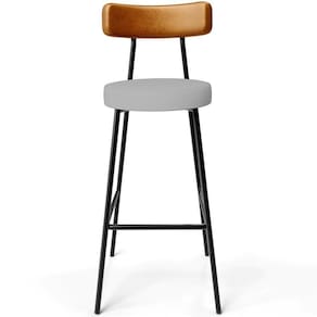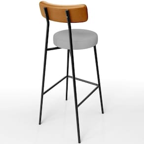 Revestimento do encosto em Couríssimo na cor Whisky e assento revestido em Linho na cor Cinza, com acabamento semi brilho.