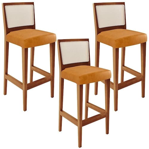 O Kit 03 Banquetas Alta Para Cozinha Encosto em Tela Branco Zion L02 Couríssimo Whisky - Lyam Decor, possui um estilo rústico que faltava para deixar sua casa ainda mais clássica. Seu encosto com o detalhe de tela sintética na cor branco trazem ainda mais estilo e destaque para sua decoração, junto com assento estofado que proporciona horas de conforto. A estrutura e o apoio para os pés, são responsáveis por garantir maior à mesma.