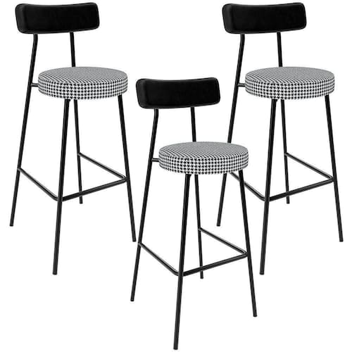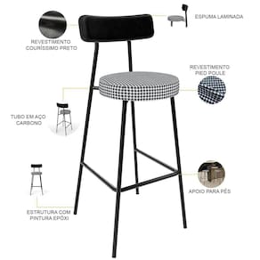 Amplamente moderna, dispondo de muito realce e design singular, o Kit 03 Banquetas Alta Cozinha Sala De Jantar Aço Milão L02 Couríssimo Preto Pied Poule - Lyam Decor vem com a personalidade e elegância que sua decoração merece! Estruturada em aço carbono, contrasta lindamente com o encosto e assento estofados, cabe mencionar ainda o revestimento do seu encosto em Couríssimo e do assento em Pied Poule, é confeccionada por materiais de excelente qualidade, extremamente resistentes e aconchegantes.
