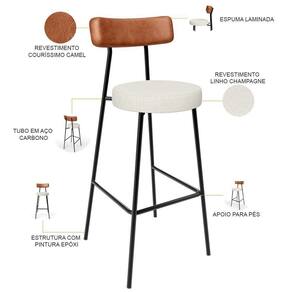 Amplamente moderna, dispondo de muito realce e design singular, o Kit 03 Banquetas Alta Bar Cozinha Sala De Jantar Aço Milão L02 Couríssimo Camel Linho Champagne - Lyam Decor vem com a personalidade e elegância que sua decoração merece! Estruturada em aço carbono, contrasta lindamente com o encosto e assento estofados, cabe mencionar ainda o revestimento do seu encosto em Couríssimo e do assento em Linho, é confeccionada por materiais de excelente qualidade, extremamente resistentes e aconchegantes.