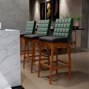 Entregando muita excelência, o Kit 03 Banquetas Altas Cozinha Sala Jantar Fixa Mila B04 Facto Verde Musgo Linho Chumbo - Lyam Decor é o complemento que faltava para deixar sua casa ainda mais extraordinária. Seu encosto com costura em padrão quadriculado e assento estofados, centralizam em si uma graciosidade estonteante, sem perder todo o conforto. A estrutura em madeira, na cor nozes, também é digna de notoriedade, por imprimir bastante personalidade a sua decoração. Vale ressaltar ainda, o apoio para os pés que garante maior segurança à banqueta.
