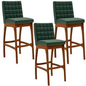 ndo muita excelência, o Kit 03 Banquetas Altas Para Cozinha Sala de Jantar Fixa Mila L02 Facto Verde Musgo - Lyam Decor é o complemento que faltava para deixar sua casa ainda mais extraordinária. Seu encosto com costura em padrão quadriculado e assento estofados, centralizam em si uma graciosidade estonteante, sem perder todo o conforto. A estrutura em madeira, na cor nozes, também é digna de notoriedade, por imprimir bastante personalidade a sua decoração. Vale ressaltar ainda, o apoio para os pés que garante maior à mesma.