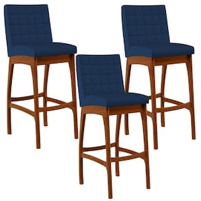 ndo muita excelência, o Kit 03 Banquetas Altas Para Cozinha Sala de Jantar Fixa Mila B04 Suede Azul Marinho - Lyam Decor é o complemento que faltava para deixar sua casa ainda mais extraordinária. Seu encosto com costura em padrão quadriculado e assento estofados, centralizam em si uma graciosidade estonteante, sem perder todo o seu conforto. A estrutura em madeira, na cor nozes, também é digna de notoriedade, por imprimir bastante personalidade a sua decoração. Vale ressaltar ainda, o apoio para os pés que garante maior à mesma.