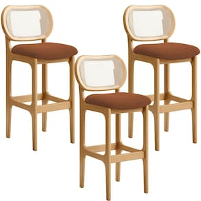 Kit 03 Banquetas Altas Para Cozinha Bancada Sala Tela Betta Fixa L02 Bouclê Terracota - Lyam - Laranja