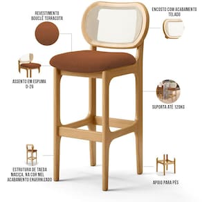 Amplamente sofisticada, a Banqueta Betta irá agregar ainda mais valor em sua decoração!! Sendo capaz de compor muito bem o ambiente, é produzida com materiais de excelente qualidade, a resistente estrutura em madeira de Taeda, na cor Mel, conta com apoio para os pés (que garante maior segurança), além do assento e encosto estofados super confortáveis e convidativos, que são revestidos em tecido Bouclê, extremamente elegante. Podendo ser disposta em bancada, cozinha americana, espaço gourmet ou home bar, as possibilidades de combinação são infinitas, o que a torna perfeita para receber família e amigos sempre de forma agradável e aconchegante, sem perder a sobriedade e requinte que possui. Você e seu lar merecem, adquira já a sua!!