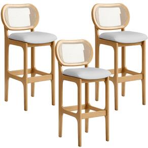 Kit 03 Banquetas Altas Para Cozinha Bancada Sala Tela Betta Fixa L02 Linho Cinza - Lyam