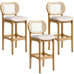 Amplamente sofisticada, a Banqueta Alta Para Cozinha Bancada Sala Tela Betta Fixa L02 Linho Cru - Lyam irá agregar ainda mais valor em sua decoração!! Sendo capaz de compor muito bem o ambiente, é produzida com materiais de excelente qualidade, a resistente estrutura em madeira de Taeda, na cor Mel, conta com apoio para os pés (que garante maior ), além do assento e encosto estofados super confortáveis e convidativos, que são revestidos em tecido Linho, extremamente elegante. Podendo ser disposta em bancada, cozinha americana, espaço gourmet ou home bar, as possibilidades de combinação são infinitas, o que a torna perfeita para receber família e amigos sempre de forma agradável e aconchegante, sem perder a sobriedade e requinte que possui. Você e seu lar merecem, adquira já a sua!! Dimensões do produto (L x A x P) 50 x 105 x 55 cm Medidas Internas: Altura do encosto: 30 cm Largura do encosto : 47 cm Altura do chão ao assento: 75 cm Largura do assento: 50 cm Profundidade do assento: 40 cm Características: Estrutura em madeira maciça de Taeda, na cor Mel com acabamento envernizado. Revestimento em Linho na cor Cru de alta qualidade, com acabamento semi brilho. Assento e encosto com espuma D-23. Acabamento em debrum no encosto. Suporta até 120 kg. Produto entregue montado. - Por se tratar de estofado as medidas podem ter uma pequena variação de até 3 cm. - A tonalidade do produto real poderá ter ligeira variação devido o lote de tecidos. - A limpeza deve ser feita com pano umedecido em água limpa, sem esfregar, não utilizar produtos abrasivos, desengordurantes, álcool ou solvente. Observações importantes: - Produto para uso residencial em ambiente interno, não devendo ficar exposto diretamente ao sol, calor e umidade excessivos. - Pode haver alguma diferença de tonalidade entre a imagem e o produto real, por conta do tratamento de imagens e a calibração de cores do seu monitor. - As imagens são meramente ilustrativas, não acompanham objetos de decoração e eletrônicos.- Ao receber a mercadoria, o cliente deve verificar as condições da embalagem, caso haja alguma não assine o de . - Montagem, desmontagem e outras instalações serão de responsabilidade do cliente. Não nos responsabilizamos, no ato da , por subir escadas/elevadores ou pelo por guincho em apartamentos. Eventuais despesas são de responsabilidade do comprador. - Confira as dimensões do produto e certifique-se de que passará normalmente por supostos elevadores, portas, escadas e/ou corredores de sua residência. ColorFamily: Cru | MaterialFamily: Madeira | Material: Madeira | ProductContents: Kit 03 Banquetas | OriginCountry: | ColorSupplier: Cru | ColorSimple: Cru | Model: Betta | OriginState: PR | Color: Cru | SizeDescription: Altura: 105 cm Largura: 50 cm Profundidade: 55 cm | SupplierSimpleName: Kit 03 Banquetas Altas Para Cozinha Bancada Sala Tela Betta Fixa L02 Linho Cru - Lyam | ProductLength: 55 cm | ProductWidth: 50 cm | ProductWarranty: 90 dias após o do produto | ProductInstructions: Produto para uso em ambiente interno, nao devendo ficar exposto ao sol, calor e umidade excessivos. | ProductHeight: 105 cm | ProductWeight: 33 kg