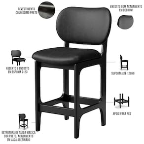 Amplamente sofisticada, o Kit 03 Banquetas Baixa Bar Cozinha Sala Jantar Betta L02 Couríssimo Preto - Lyam Decor irá agregar ainda mais valor em sua decoração!! Sendo capaz de compor muito bem o ambiente, é produzida com materiais de excelente qualidade, a resistente estrutura em madeira de Taeda, na cor Preto, conta com apoio para os pés (que garante maior segurança), além do assento e encosto estofados super confortáveis e convidativos, que são revestidos em tecido Couríssimo, composição extremamente elegante.