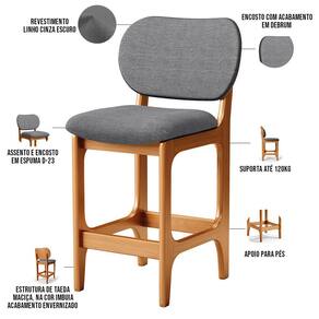 Amplamente sofisticada, o Kit 03 Banquetas Baixa Bar Cozinha Sala Jantar Betta L02 Imbuia Linho Cinza Escuro - Lyam Decor irá agregar ainda mais valor em sua decoração!! Sendo capaz de compor muito bem o ambiente, é produzida com materiais de excelente qualidade, a resistente estrutura em madeira de Taeda, na cor imbuia, conta com apoio para os pés (que garante maior segurança), além do assento e encosto estofados super confortáveis e convidativos, que são revestidos em tecido Couríssimo, composição extremamente elegante.