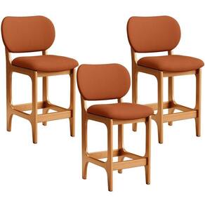 Kit 03 Banquetas Baixa Bar Cozinha E Sala De Jantar Fixa Betta L02 Imbuia Tecido Terracota - Lyam Decor