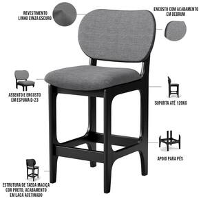 Amplamente sofisticada, o Kit 03 Banquetas Baixa Bar Cozinha Sala Jantar Betta L02 Linho Cinza Escuro - Lyam Decor irá agregar ainda mais valor em sua decoração!! Sendo capaz de compor muito bem o ambiente, é produzida com materiais de excelente qualidade, a resistente estrutura em madeira de Taeda, na cor Preto, conta com apoio para os pés (que garante maior ), além do assento e encosto estofados super confortáveis e convidativos, que são revestidos em tecido Couríssimo, composição extremamente elegante.