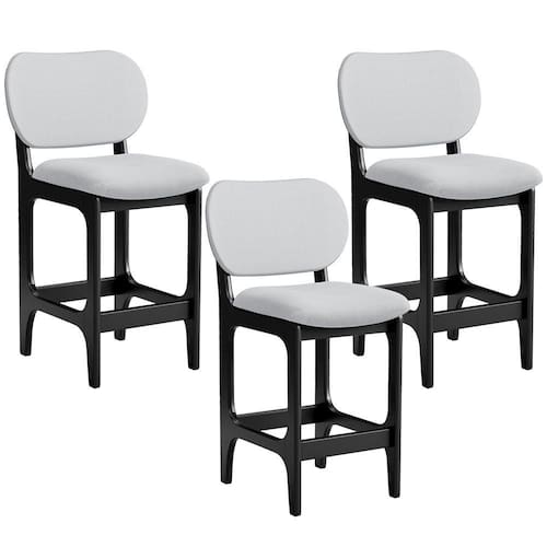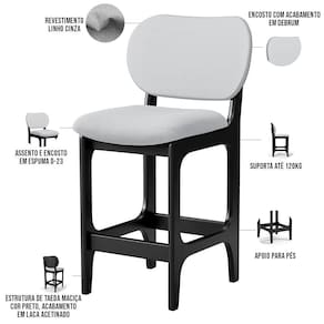 Amplamente sofisticada, o Kit 03 Banquetas Baixa Bar Cozinha Sala Jantar Betta L02 Linho Cinza - Lyam Decor irá agregar ainda mais valor em sua decoração!! Sendo capaz de compor muito bem o ambiente, é produzida com materiais de excelente qualidade, a resistente estrutura em madeira de Taeda, na cor Preto, conta com apoio para os pés (que garante maior segurança), além do assento e encosto estofados super confortáveis e convidativos, que são revestidos em tecido Couríssimo, composição extremamente elegante.