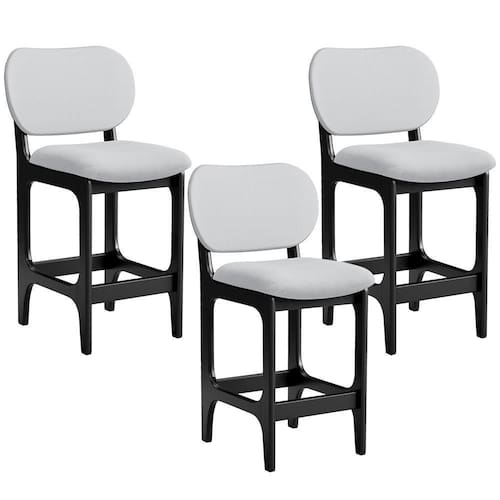 Amplamente sofisticada, o Kit 03 Banquetas Baixa Bar Cozinha Sala Jantar Betta L02 Linho Cinza - Lyam Decor irá agregar ainda mais valor em sua decoração!! Sendo capaz de compor muito bem o ambiente, é produzida com materiais de excelente qualidade, a resistente estrutura em madeira de Taeda, na cor Preto, conta com apoio para os pés (que garante maior ), além do assento e encosto estofados super confortáveis e convidativos, que são revestidos em tecido Couríssimo, composição extremamente elegante.