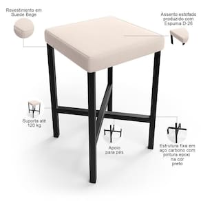 Color: Preto | ColorFamily: Preto | ColorSimple: Preto | ColorSupplier: Bege | Material: Estrutura de aço carbono, Revestimento em Suede e espuma | MaterialFamily: Aço carbono, suede e espuma | Model: Stella | OriginCountry: Nacional | OriginState: PR | ProductContents: 03 Banquetas | ProductHeight: 98 cm | ProductInstructions: Produto para uso em ambiente interno, nao devendo ficar exposto ao sol, calor e umidade excessivos. | ProductLength: 37 cm | ProductWarranty: 90 dias após o recebimento do produto | ProductWeight: 12 kg | ProductWidth: 39 cm | SizeDescription: Altura: 98 cm x Largura: 39 cm x Profundidade: 37 cm | SupplierSimpleName: Kit 03 Banquetas Baixa Bar Cozinha Sala De Jantar Preto Stella L02 Suede Bege - Lyam Decor