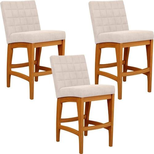 ndo muita excelência, o Kit 03 Banquetas Baixa Para Cozinha Bancada Bar Sala De Jantar 90 cm Fixa Mila L02 Suede Bege - Lyam Decor é o complemento que faltava para deixar sua casa ainda mais extraordinária. Seu encosto com costura em padrão quadriculado e assento estofados, centralizam em si uma graciosidade estonteante, sem perder todo o seu conforto. A estrutura em madeira, na cor nozes, também é digna de notoriedade, por imprimir bastante personalidade a sua decoração. Vale ressaltar ainda, o apoio para os pés que garante maior à mesma.