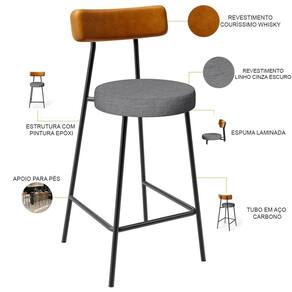 Amplamente moderna, dispondo de muito realce e design singular, o Kit 03 Banquetas Baixa Para Cozinha Sala De Jantar Bar Bancada Milão L02 Couríssimo Whisky Linho Cinza Escuro - Lyam Decor vem com a personalidade e elegância que sua decoração merece! Estruturada em aço carbono, contrasta lindamente com o encosto e assento estofados, cabe mencionar ainda seu revestimento em Couríssimo, é confeccionada por materiais de excelente qualidade, extremamente resistentes e aconchegantes.
