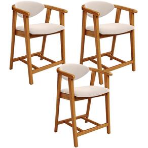 Kit 03 Banquetas Baixa Cozinha Sala de Jantar Bancada Cecília L02 Suede Bege - Lyam Decor