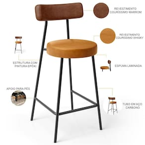 Amplamente moderna, dispondo de muito realce e design singular, o Kit 03 Banquetas Baixa Para Cozinha Sala De Jantar Bar Bancada Milão L02 Couríssimo Marrom Couríssimo Whisky - Lyam Decor vem com a personalidade e elegância que sua decoração merece! Estruturada em aço carbono, contrasta lindamente com o encosto e assento estofados, cabe mencionar ainda seu revestimento em Couríssimo, é confeccionada por materiais de excelente qualidade, extremamente resistentes e aconchegantes.