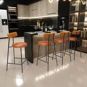 Amplamente moderna, dispondo de muito realce e design singular, o Kit 03 Banquetas Baixa Para Cozinha Sala De Jantar Bar Bancada Milão L02 Couríssimo Whisky Couríssimo Camel - Lyam Decor vem com a personalidade e elegância que sua decoração merece! Estruturada em aço carbono, contrasta lindamente com o encosto e assento estofados, cabe mencionar ainda seu revestimento em Couríssimo, é confeccionada por materiais de excelente qualidade, extremamente resistentes e aconchegantes.