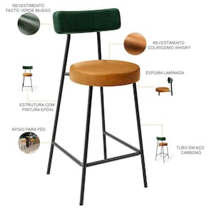 Amplamente moderna, dispondo de muito realce e design singular, a Banqueta Baixa Para Cozinha Sala De Jantar Bar Bancada Milão L02 Verde Musgo Couríssimo Whisky - Lyam Decor vem com a personalidade e elegância que sua decoração merece! Estruturada em aço carbono, contrasta lindamente com o encosto e assento estofados, cabe mencionar ainda seu revestimento em Couríssimo, é confeccionada por materiais de excelente qualidade, extremamente resistentes e aconchegantes.