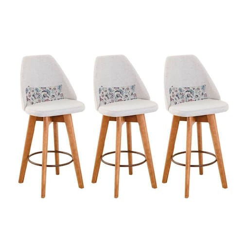Kit 03 Banquetas Alta Maya Giratória Com Encosto Linho Bege Claro E Almofada Flores - Gat Magazine Banqueta Maya Giratória - GAT MAGAZINE A Banqueta Maya possui assento e pés em madeira eucalipto com sistema giratório! Os pés contam com um reforço que proporciona um suporte de peso de até 120 assento é revestido com espuma D-23. Além de bonita e charmosa, vai trazer para seu ambiente elegância e proporcionará conforto para sua família e amigos nos momentos de lazer.