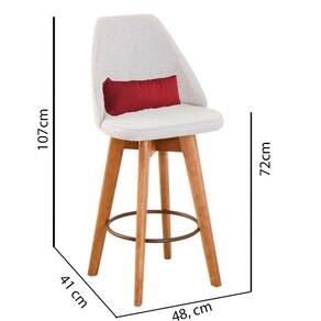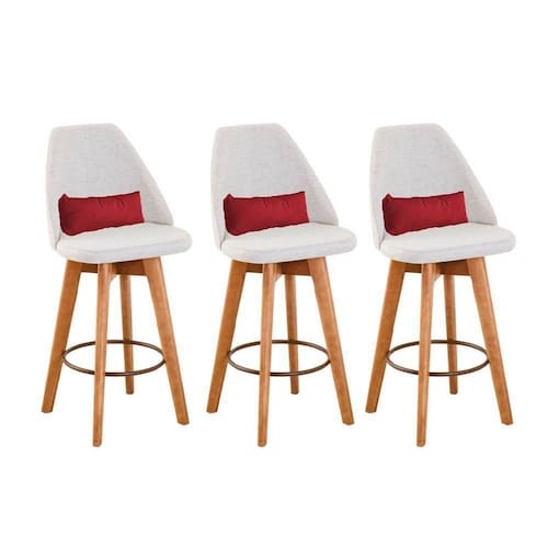 Kit 03 Banquetas Alta Maya Giratória Com Encosto Linho Bege Claro E Almofada Sintético Vermelho - Gat Magazine