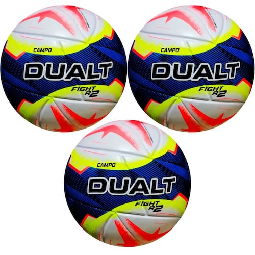 Kit com 3 Bolas de Campo Dualt Fight R2 Techfusion – Alta Performance em Qualquer Condição de Jogo Aposte em qualidade e praticidade com o Kit Dualt Fight R2 Techfusion, composto por 3 bolas de futebol de campo desenvolvidas para oferecer máxima precisão, resistência e durabilidade em gramados naturais. Ideal para treinos, jogos recreativos ou competições amadoras, esse kit garante que você tenha sempre bolas reservas à disposição, sem abrir mão da performance. Diferenciais do kit: