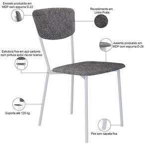 ColorSupplier: Prata | OriginState: PR | OriginCountry: Brasil | Color: Prata | Material: Estrutura em Aço e MDP, Revestimento em Linho e espuma | Model: Village | ProductHeight: 249 cm | SizeDescription: Altura: 249 cm x Largura: 43 cm x Profundidade: 53 cm | ProductWarranty: 90 dias após o recebimento do produto | ProductInstructions: Produto para uso em ambiente interno, nao devendo ficar exposto ao sol, calor e umidade excessivos. | ProductWeight: 19,5 Kg | ProductLength: 53 cm | ProductContents: 03 Cadeiras | MaterialFamily: Aço, MDP, Linho e espuma | SupplierSimpleName: Kit 03 Cadeira Para Sala de Jantar Village Branco C01 Linho Prata - Lyam Decor | ColorSimple: Prata | ColorFamily: Prata | ProductWidth: 43 cm | Cor: Cinza