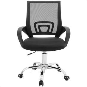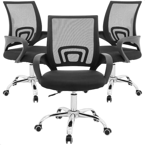 Estrutura em Metal cromadoKit 03 Cadeiras Escritório Giratória Preta Regulagem Altura - P110 ARES