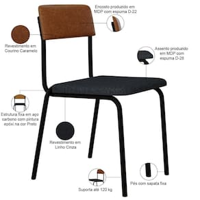 Model: Sense | Color: Caramelo | Firmeza: Firme | Cor do estofamento: CinzaCaramelo | Profundidade da cadeira: 51 cm | Profundidade do assento: 40 cm | Requer montagem: Não | Largura do assento: NA | Altura do assento a partir do solo: 47,5 cm | Peso máximo suportado: 120 kg | É dobrável: Não | Cor: Caramelo | É empilhável: Não | ColorSimple: Caramelo | ColorSupplier: Caramelo | Fabricante: Lyam Decor | ProductWarranty: 90 dias após o recebimento do produto | ProductHeight: 243 cm | Desenho do tecido: Liso | Material do estofamento: Aço, MDP, Linho e Couro sintético | Altura da cadeira: 81 cm | Largura da cadeira: 47,5 cm | Espessura do assento: na | ColorFamily: Caramelo | Tempo de montagem: na | Material: Estrutura em Aço e MDP, Revestimento em Linho e Couro sintético | MaterialFamily: Aço, MDP, Linho e Couro sintético | OriginCountry: Brasil | OriginState: PR | ProductContents: 03 Cadeiras | SizeDescription: Altura: 243 cm x Largura: 48 cm x Profundidade: 51 cm | SupplierSimpleName: Kit 03 Cadeiras Estofada Para Sala de Jantar Sense Preto C01 Linho Cinza Courino Caramelo - Lyam Dec | ProductLength: 51 cm | ProductWidth: 48 cm | ProductInstructions: Produto para uso em ambiente interno, nao devendo ficar exposto ao sol, calor e umidade excessivos. | ProductWeight: 16,7 Kg | Cor da estrutura da cadeira: Preto | Cor do assento: Cinza | É cadeira de balanço: Não