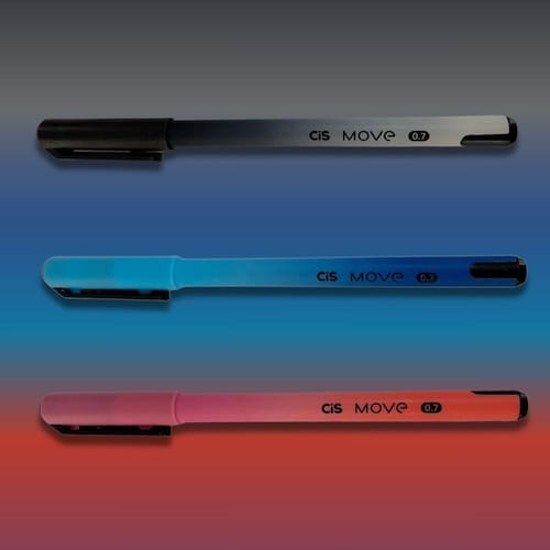 Kit 03 Caneta Esferográfica Cis Move 0.7mm Colorida Ponta Fina Az, Pt, Vm